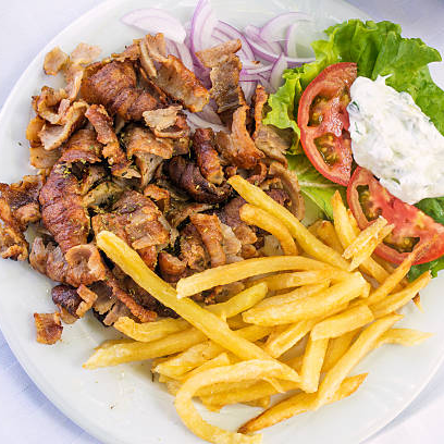 Gyros Pita, Pork or ChickenFries, ketchup, mustard, tomato, onion 4.00 € | |
